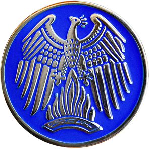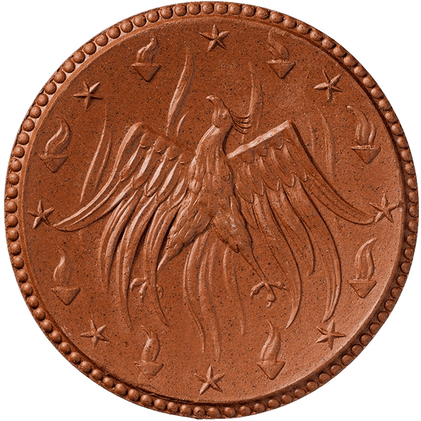 Der Phoenix erscheint erstmalig auf einer Keramikmedaille (Weihnachtsspiel) von 1920. Hier ist stark der klassische Eindruck erkennbar, der sich im Einzeldetail (Federkleid) erkennen lässt.