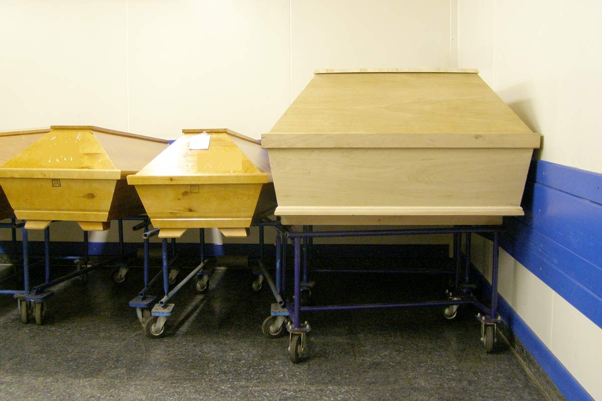 Für den Notfall haben wir auch Überbreiten und Überlängen von Särgen hier vorrätig, die kurzfristig bei uns abgeholt werden können.